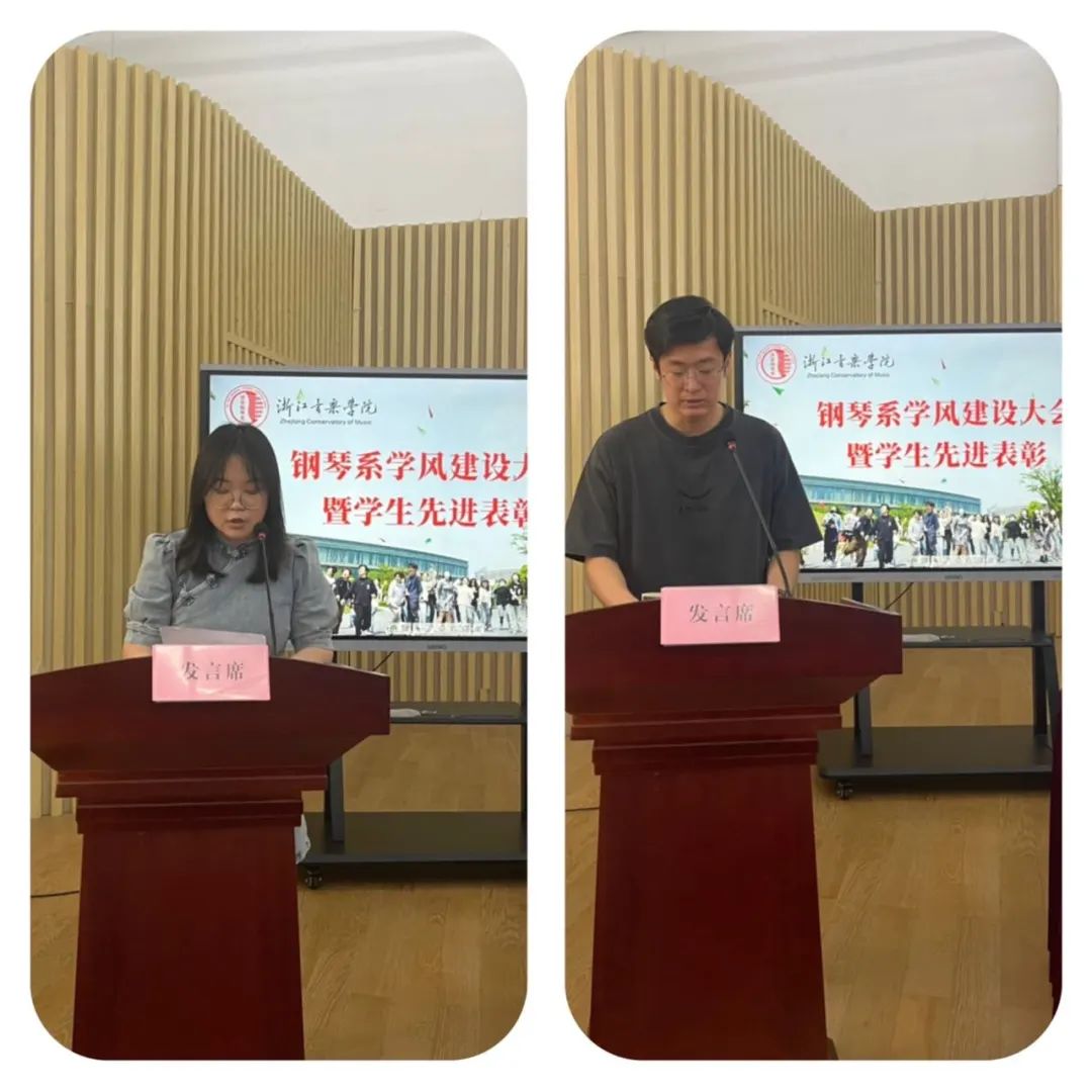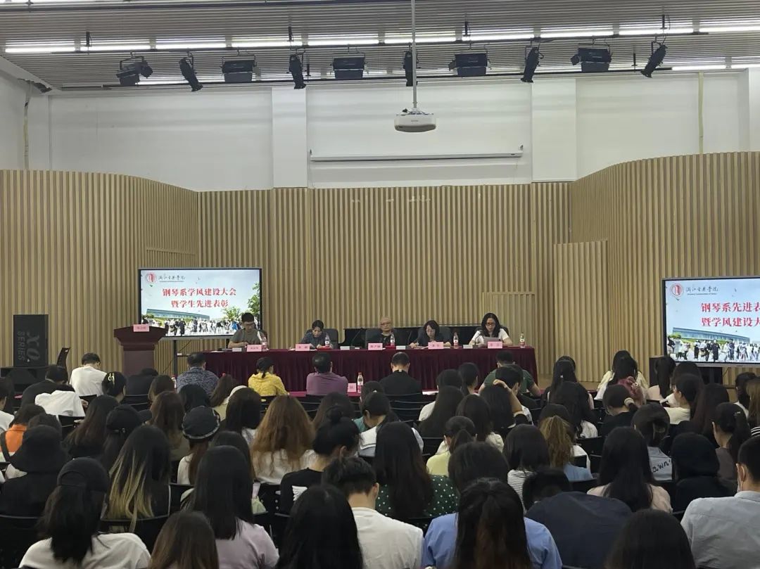 本次大会,对学风建设先进集体及个人进行了表彰,传达了关于诚信考试的精神和具体要求,同时再次解读钢琴系相关学生管理规定、教学管理规定,并对学风建设相关情况进行了通报。