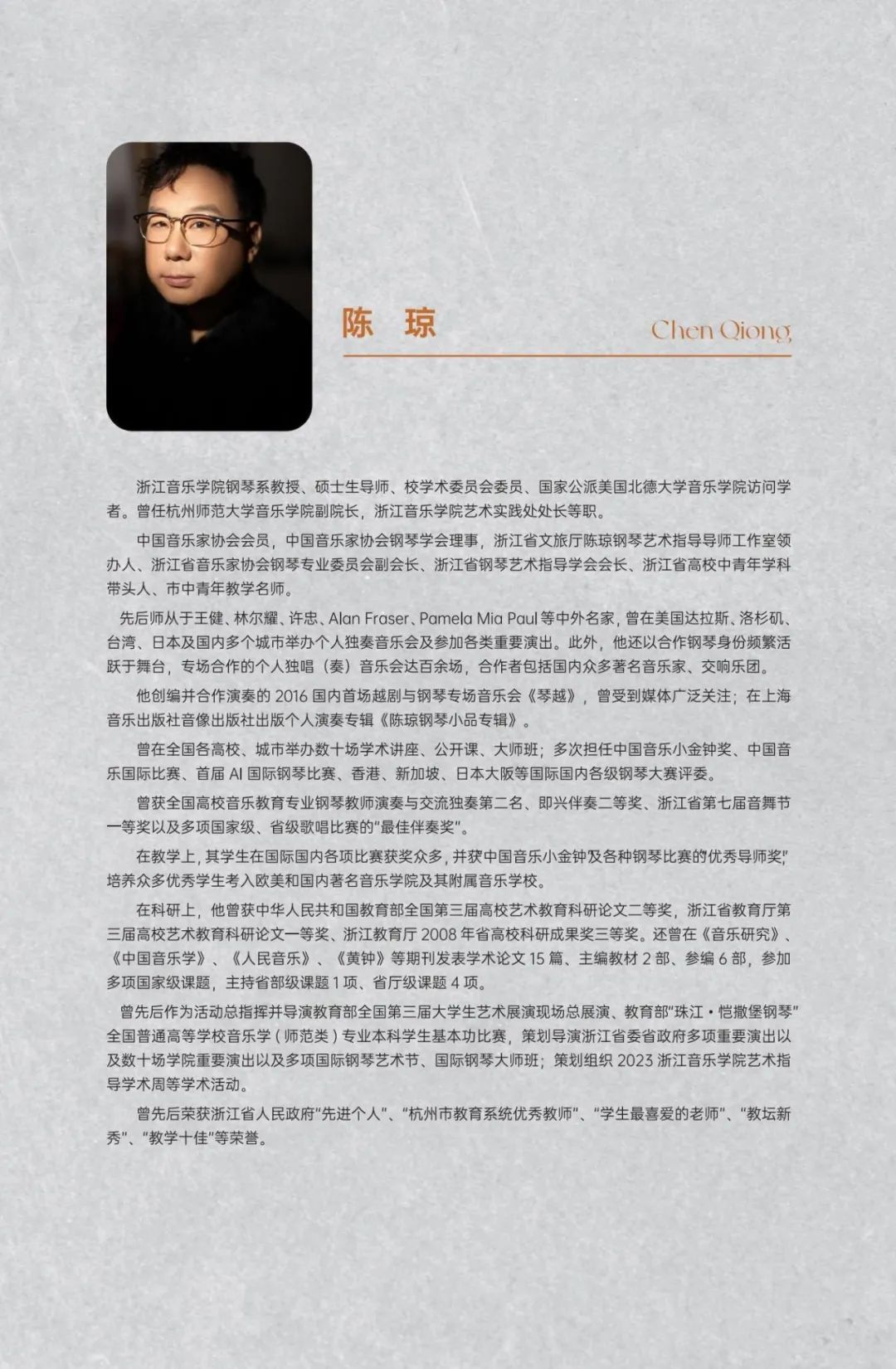 音乐会预告|陈琼教授钢琴独奏音乐会——溯影流光·从海顿到博尔科姆