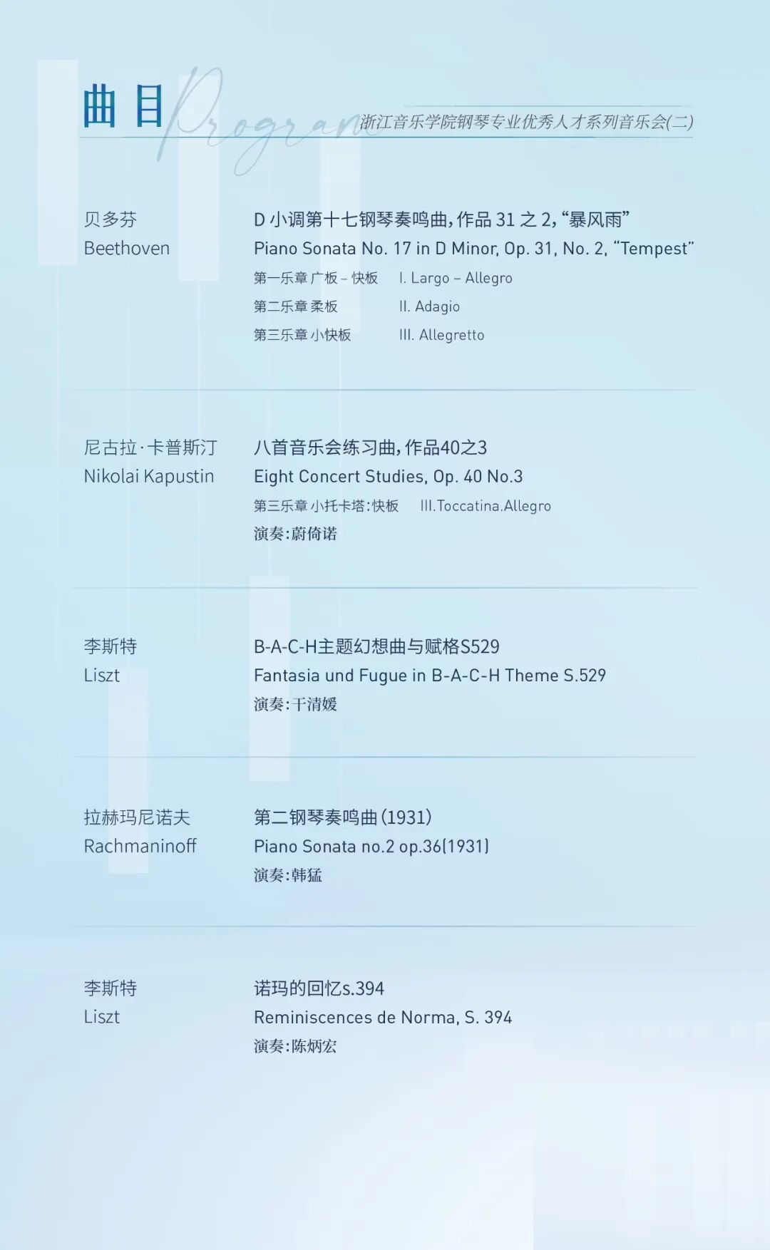 音乐会预告|浙江音乐学院钢琴专业优秀人才系列音乐会(二)