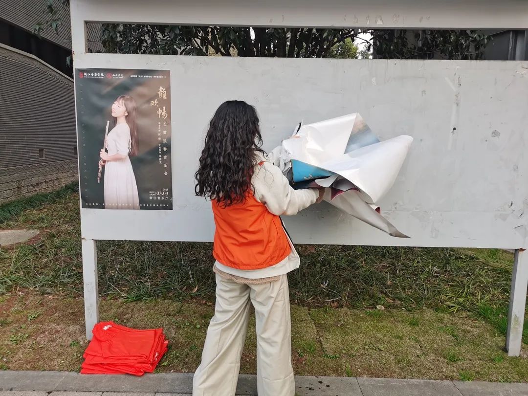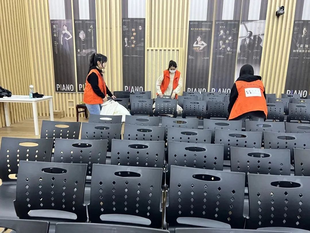 参与活动的三支志愿服务小分队,分别对学校各处公告栏、钢琴系排练厅以及对应网格进行维护和整理。