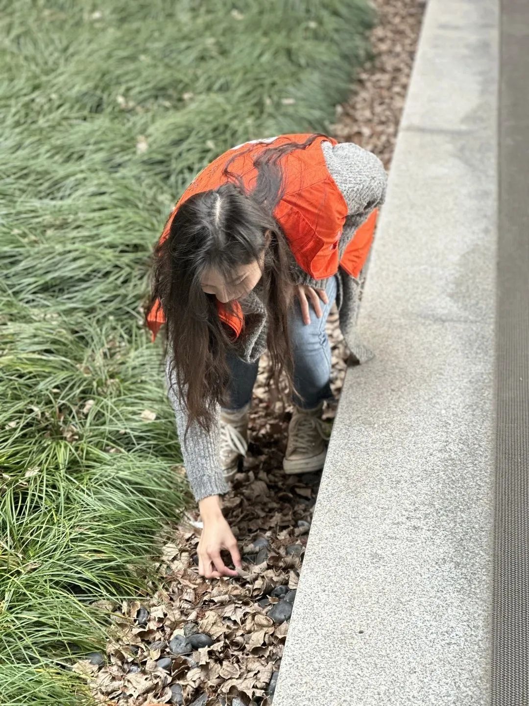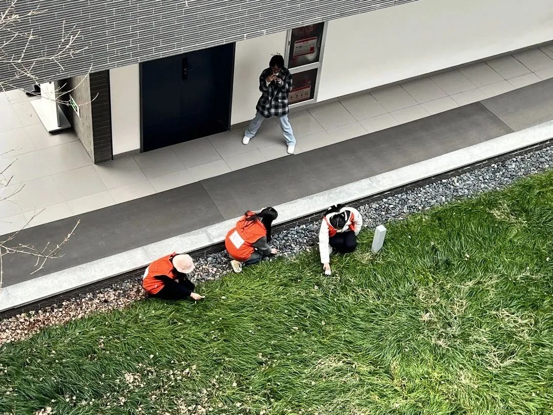 负责网格的志愿者们仔细的将草丛中的垃圾清理出来,细碎的纸片也不放过。在大家的共同努力下,草坪变得更加干净。虽然大家累得满头大汗,但心里都为整洁的草坪感到高兴。