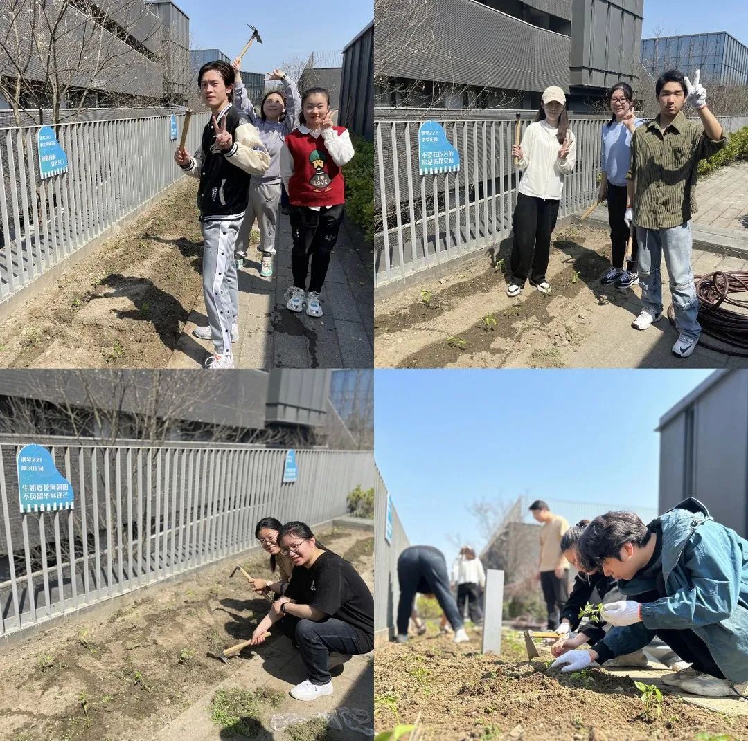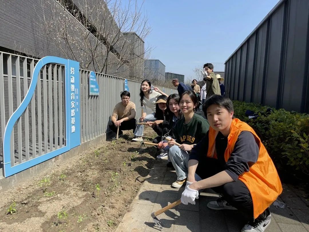 活动当天,在我系三楼的劳动教育实践基地,师生自发结组,各有分工,有的挥锄挖土,有的扶苗填坑,有的挥锹培土,有的夯实土层,场面好不热闹。在活动现场,师生们共同种下了五棵象征着团结精神与集体意识的石榴树,每个班在自己的责任田中也种下了红红火火的辣椒苗,还集思广益,为小小责任田取名并写下绿色铭言,种植活动不仅让师生们学会了种植技巧,了解了植物的生长过程,也让师生们体验了劳动的辛苦和快乐。