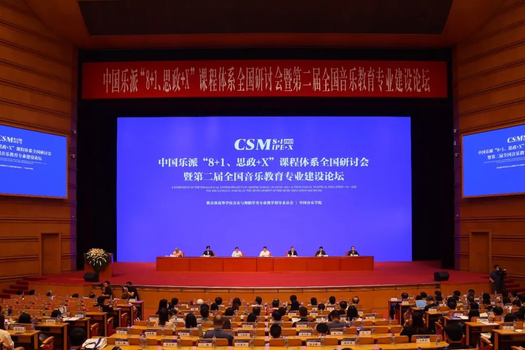 6月5日,中国乐派“8+1、思政+X”课程体系全国研讨会暨第二届全国音乐教育专业建设论坛在北京会议中心隆重开幕。本次大会由教育部高等学校音乐与舞蹈学类专业教学指导委员会主办,中国音乐学院承办。教育部高等教育司副司长武世兴莅临指导并致辞。北京市教委主任李奕视频致辞。教育部高等学校音乐与舞蹈学类专业教学指导委员会主任委员、中国音乐学院原院长王黎光,中国音乐学院党委书记王旭东,上海音乐学院院长廖昌永,浙江音乐学院院长王瑞等出席开幕式。来自全国各高校、各大艺术院团等近800名领导嘉宾、专家学者齐聚北京会议中心。开幕式由中国音乐学院院长李心草主持。