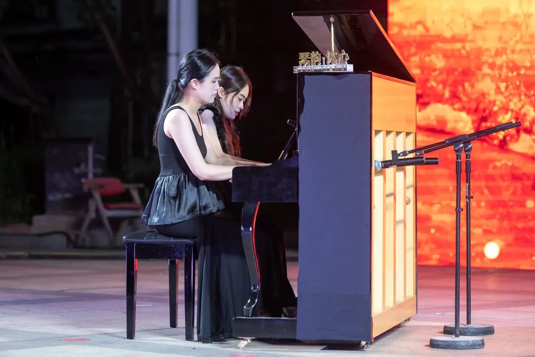 紧接着《打上花火》《千与千寻》等经典动漫主题曲以及《等你来》杭州亚运会志愿者主题曲的精彩上演,最后一个节目以爱国主义歌曲《我和我的祖国》结束,钢琴系学生为观众们发放了小红旗,并和观众一起唱起了我和我的祖国,全场气氛热烈,即使是炎炎夏日也抵挡不住观众们的热情。