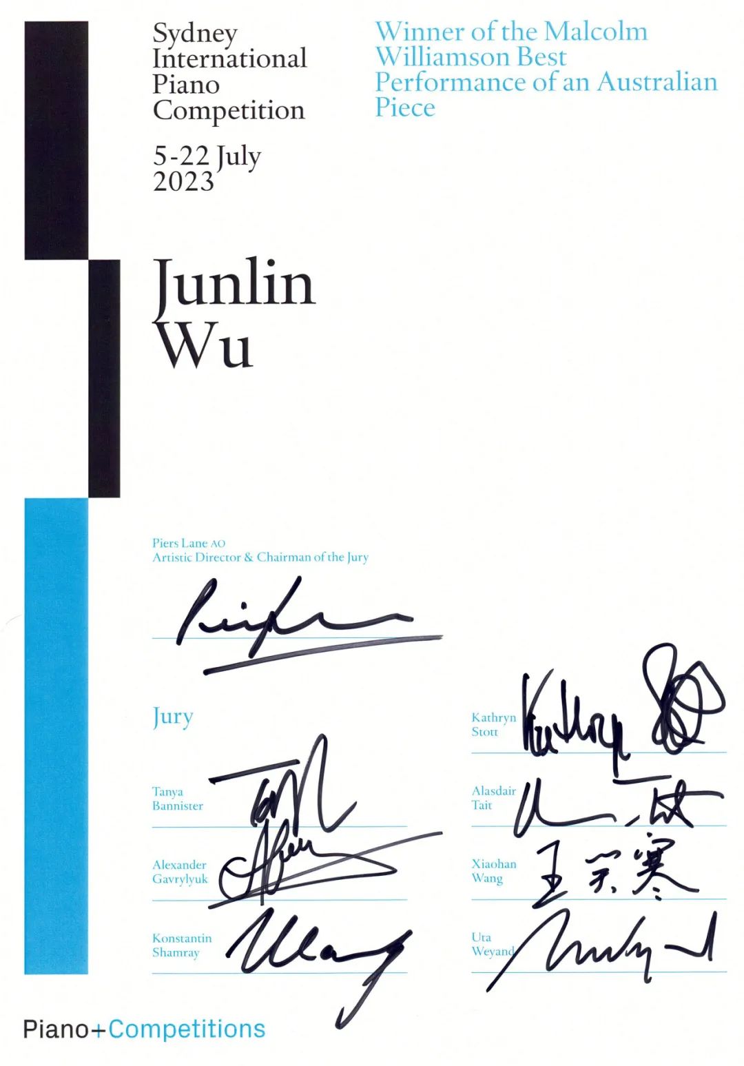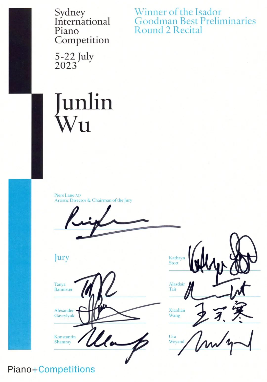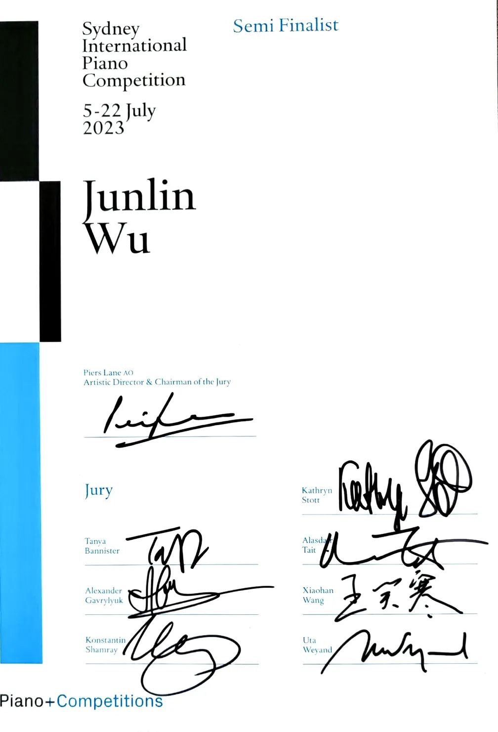 喜讯丨浙江音乐学院钢琴系青年教师吴君麟在2023悉尼国际钢琴比赛中获奖