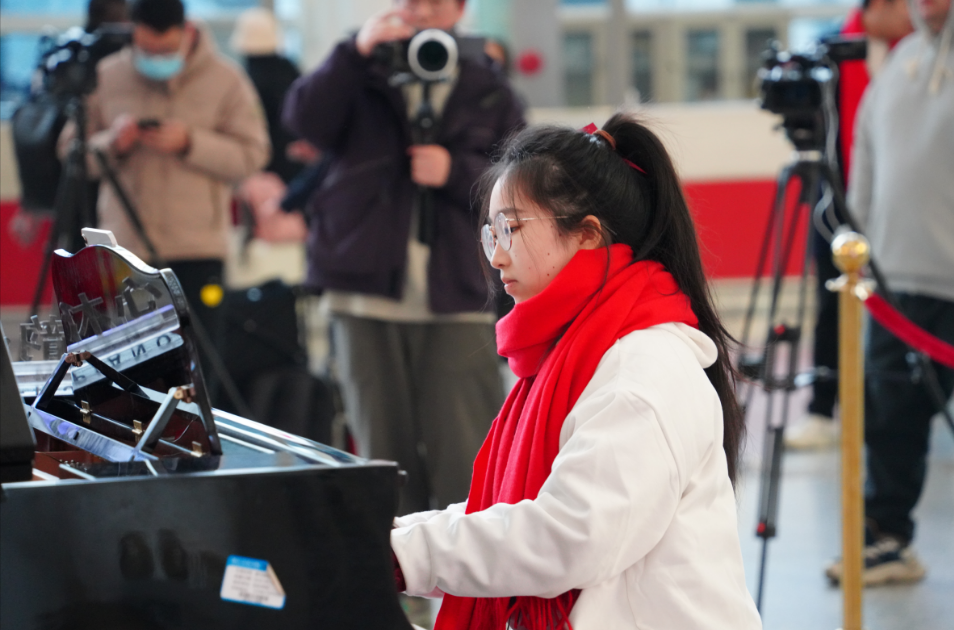 整场钢琴快闪活动中,钢琴系师生用西洋乐演奏了浓浓“中国风”,吸引众多旅客拍照留念,共同见证这个难忘的时刻。