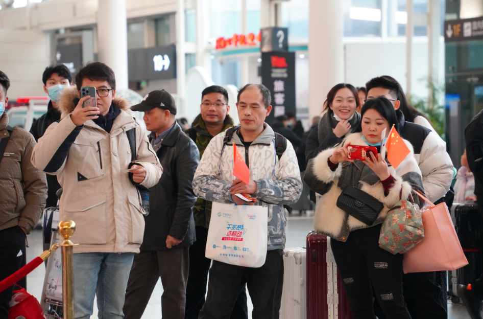 旅客在机场大厅驻足欣赏