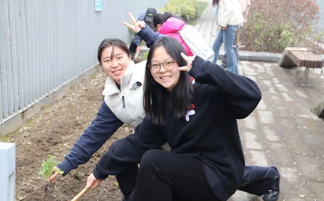 活动正式开始后,大家分工协作,大家按照步骤铲土、扶苗、浇水,各道工序有条不紊,一颗颗树苗渐渐昂扬挺立。同学们在植树过程中互相交流劳动心得,并将体会写在了小卡片上。