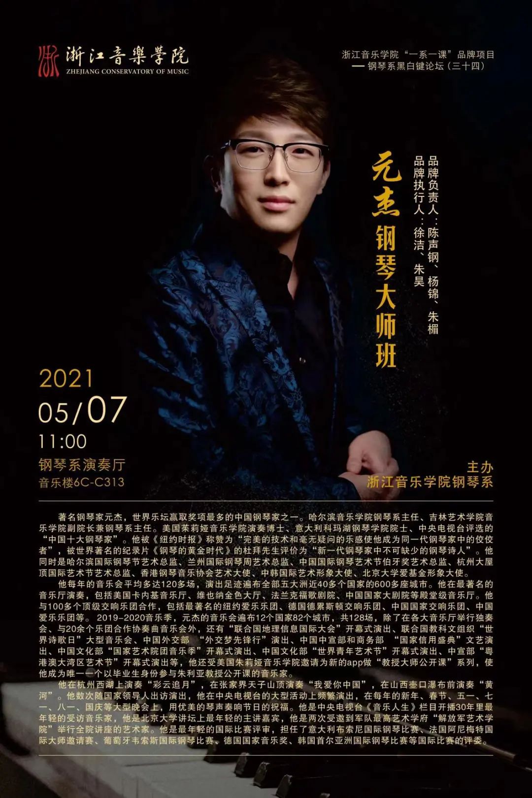 著名钢琴家元杰,世界乐坛赢取奖项最多的中国钢琴家之一。哈尔滨音乐学院钢琴系主任、吉林艺术学院音乐学院副院长兼钢琴系主任。美国茱莉娅音乐学院演奏博士、意大利科玛湖钢琴学院院士、中央电视台评选的“中国十大钢琴家”。他被《纽约时报》称赞为“完美的技术和毫无疑问的乐感使他成为同一代钢琴家中的佼佼者”,被世界著名的纪录片《钢琴的黄金时代》的杜拜先生评价为“新一代钢琴家中不可缺少的钢琴诗人”。他同时是哈尔滨国际钢琴节艺术总监、兰州国际钢琴周艺术总监、中国国际钢琴艺术节伯牙奖艺术总监、杭州大屋顶国际艺术节艺术总监、香港钢琴音乐协会艺术大使、中韩国际艺术形象大使、北京大学爱基金形象大使。