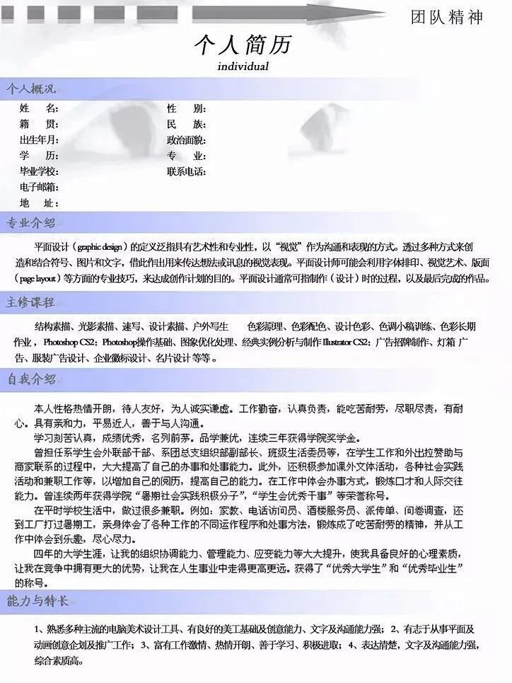 简历内容要易于浏览,大量文字堆砌成的简历,虽介绍详细,涵盖面广,但不简洁,重点不突出,容易让人产生视觉疲劳。