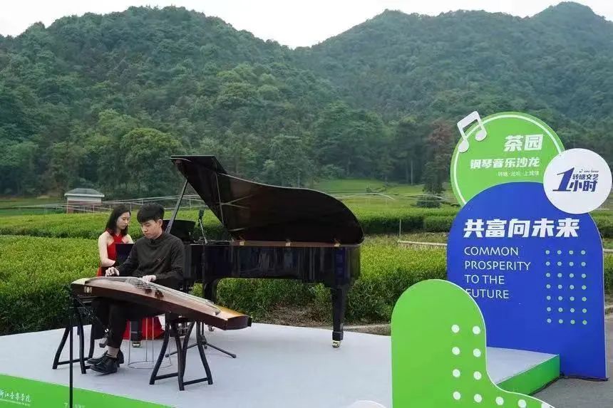 和煦春风,茶香徐徐,渺渺琴音在杭州市西湖区转塘街道上城埭村的茶山间飘扬。5月19日下午,钢琴系党总支带领教工和学生两个党支部,走进杭州市西湖区转塘街道上城埭村,在学院“结对共建”党支部——宣传党支部的大力支持协助下举行校地共建文化志愿服务活动。活动通过参观、座谈,了解当地的致富历程和美丽乡村建设的重大成果。一场共富向未来——茶园钢琴音乐沙龙将活动推向高潮。